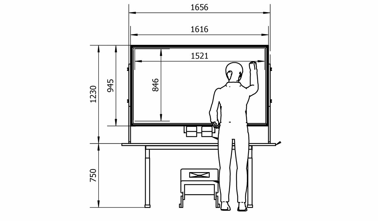 The LGE-S70, 70“ Smart-Lightboard is designed for use in a dedicated space with a controlled environment, such as studio. With a larger work surface area (2.5 x the 46”) it is ideal for users that need to display a large amount of content on the screen, for example a long math equation or many visual assets simultaneously.